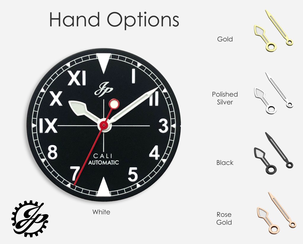 The hour and minute hands are in a ‘Ranger’ military style and are available in 4 colour options. The sweep second hand has a luminous pip and is available in 12 colour options.The hands are filled with C1 Super-LumiNova® to match the dial.