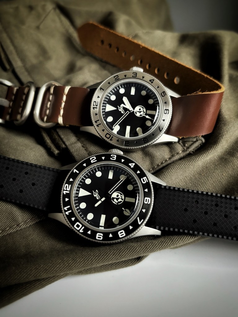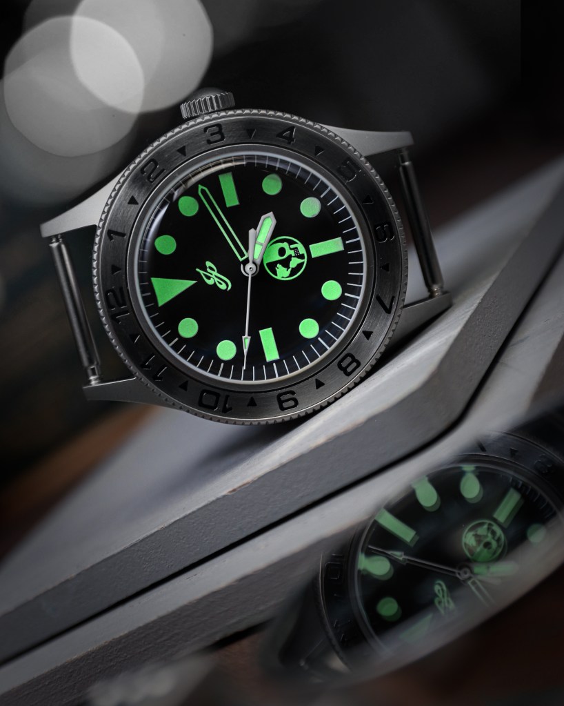 The case pays homage to the dive watches of the 1950’s offered to military and navy personnel. It is made from 316L stainless steel and has a sandblasted finish. It also features a uni-directional bezel, screw-down crown and a screw-down style case back with custom engraving.