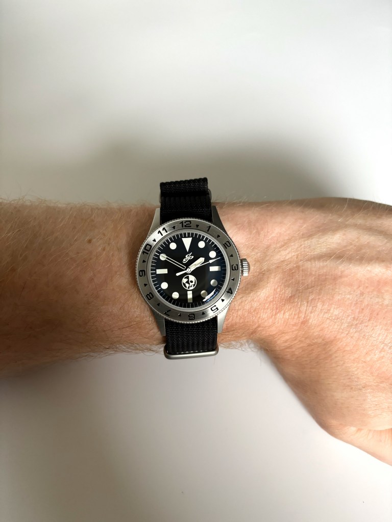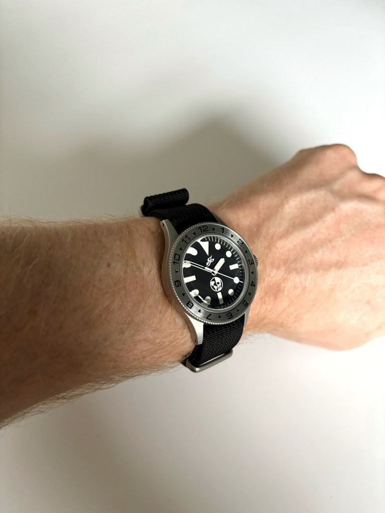 Secondary strap comes in the form of a ribbed nylon NATO strap with sandblasted hardware.